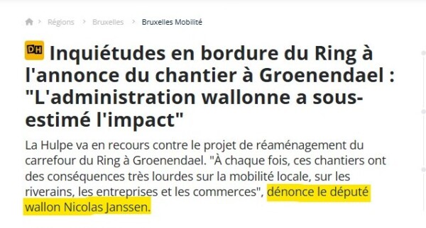 La DH 26/02/26 : Inquiétudes en bordure du Ring à l’annonce du chantier à Groenendael : « L’administration wallonne a sous-estimé l’impact »