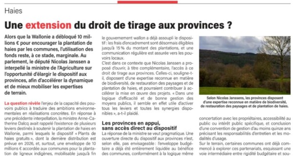 Le Sillon belge 29/01/26 : Plantation de haies en Wallonie – La faible consommation des budgets interroge