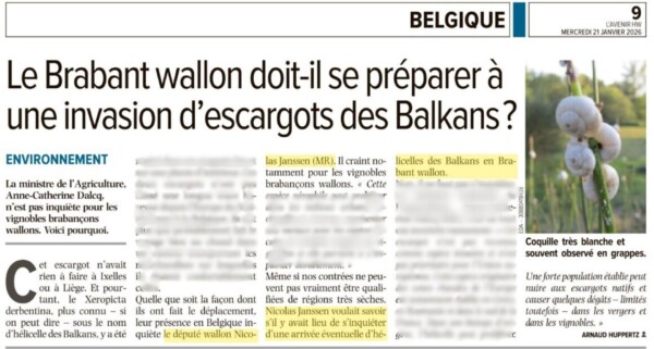 L’Avenir 20/01/2026 : Le Brabant wallon doit-il se préparer à une invasion d’escargots des Balkans ?